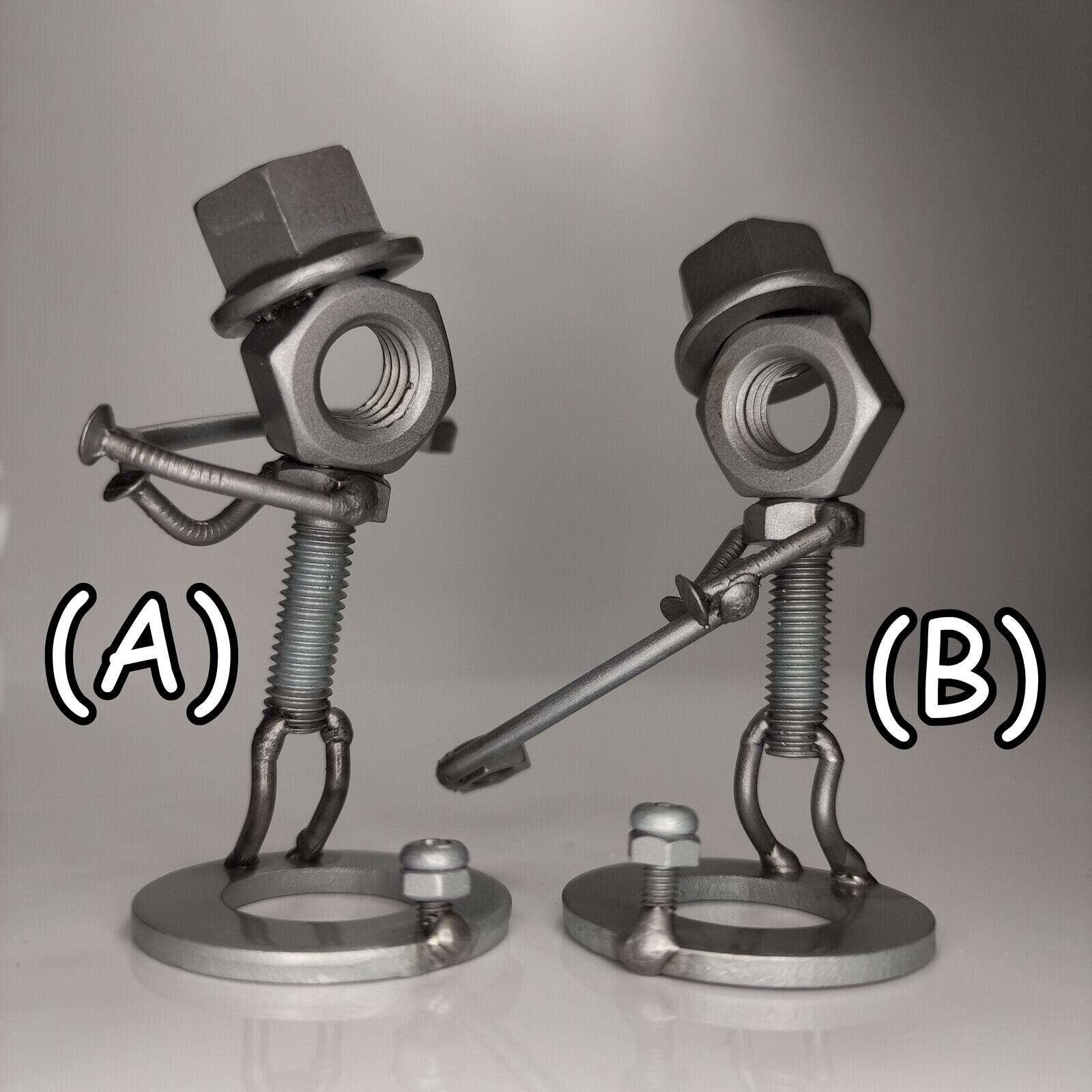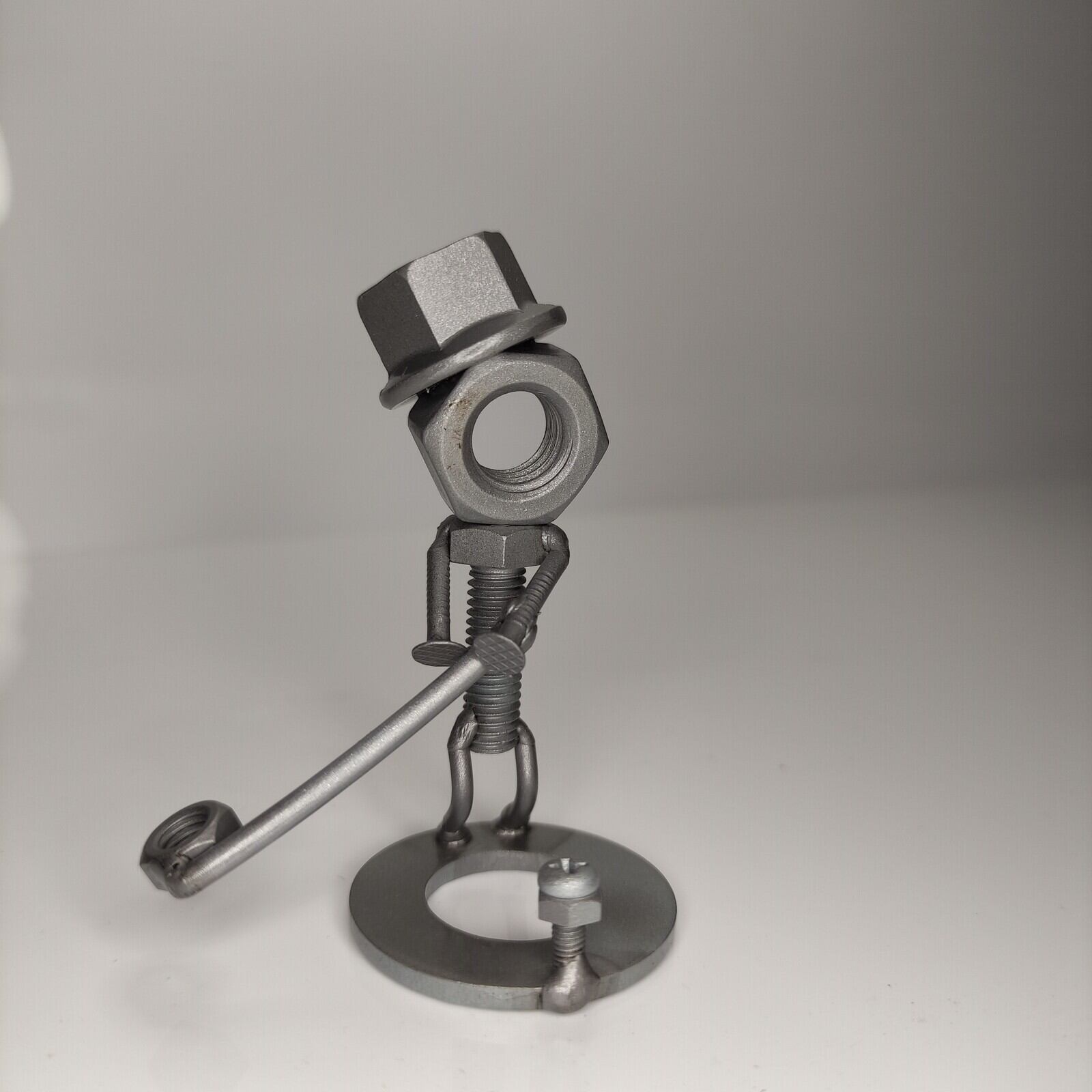 集めて楽しい飾って楽しい休日シリーズのボルトナットさん。新しく覚えたゴルフのスイングフォームを今日も確認してます。