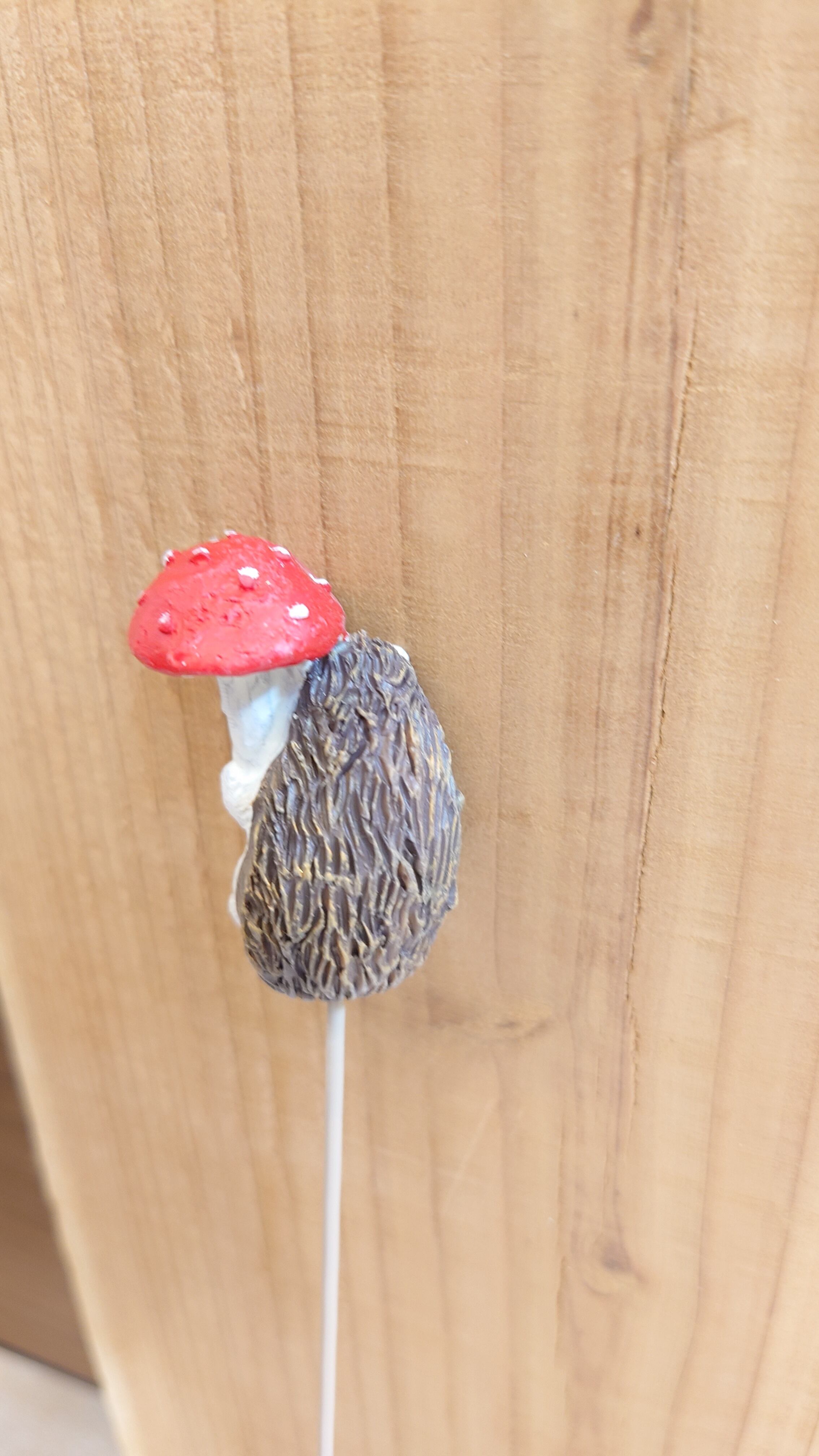 ハリネズミとキノコのモチーフが描かれており、庭やプランターにさりげなく置くだけで、おしゃれな雰囲気を演出します。