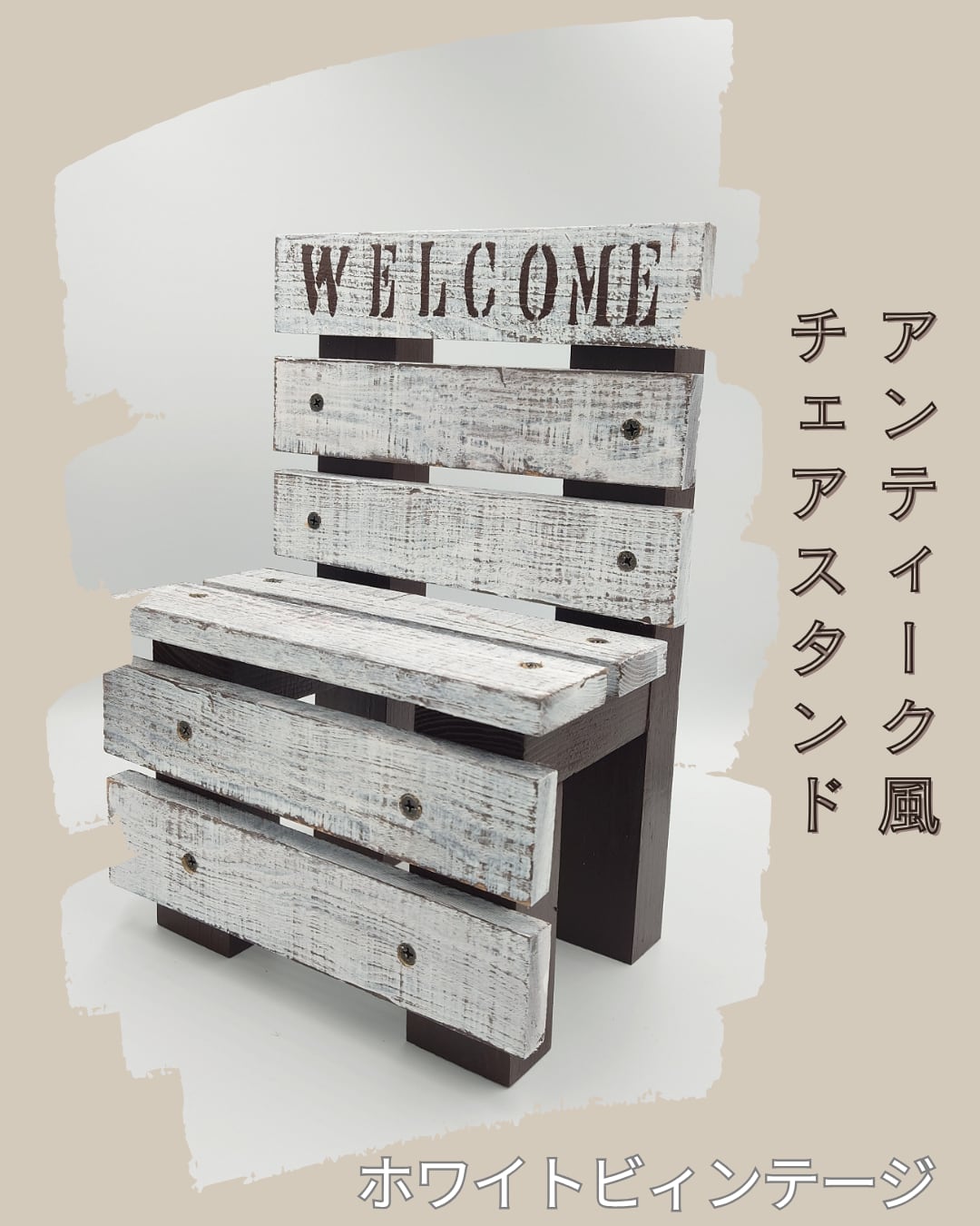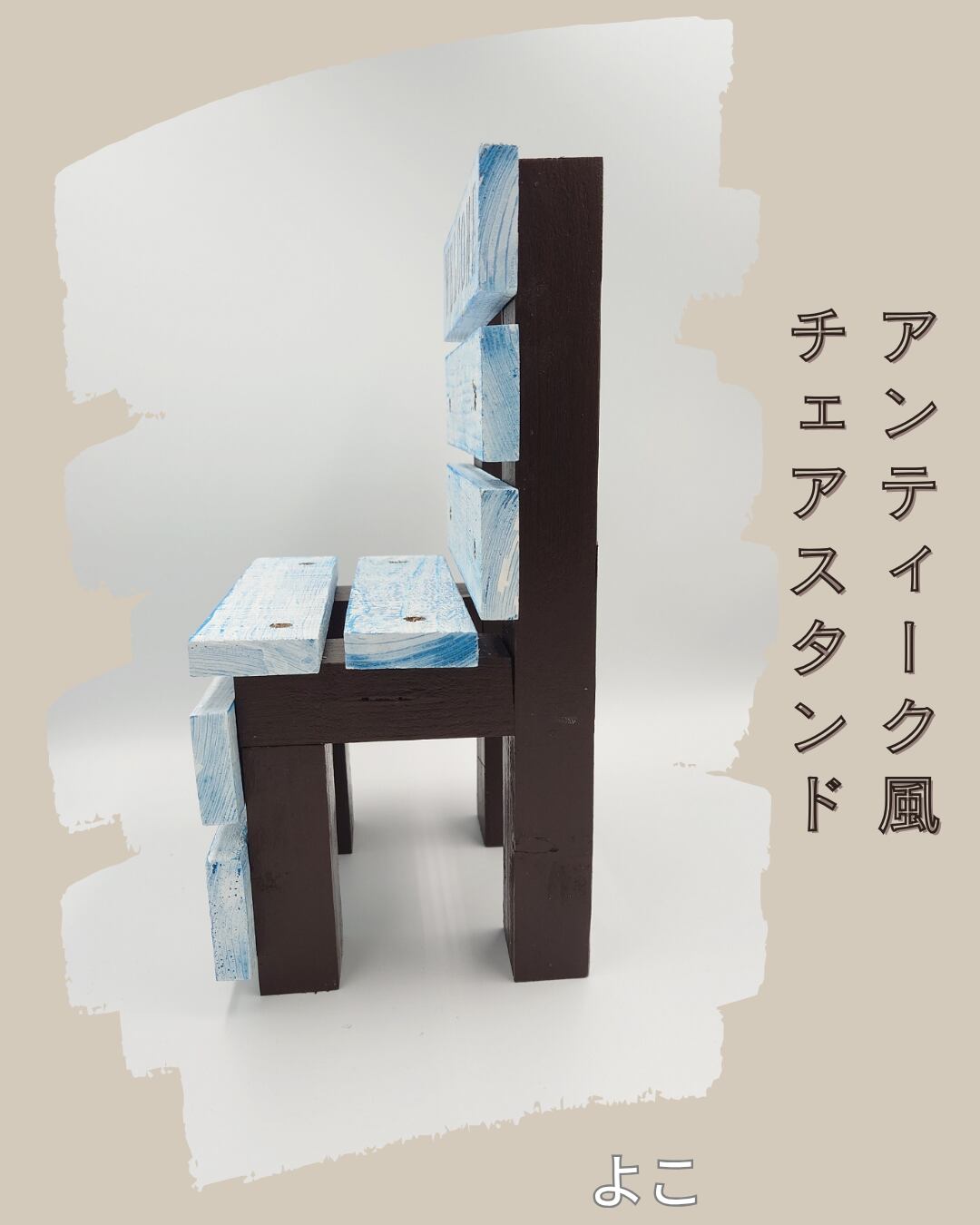 ちょこんと可愛い、椅子の形をしたハンドメイドの台座が登場しました! まるで昔からそこにあったかのような、味わい深いビンテージカラーで仕上げています。